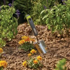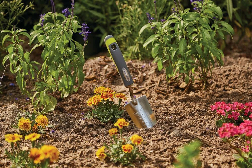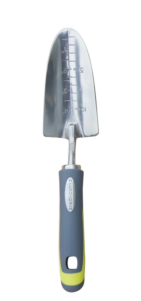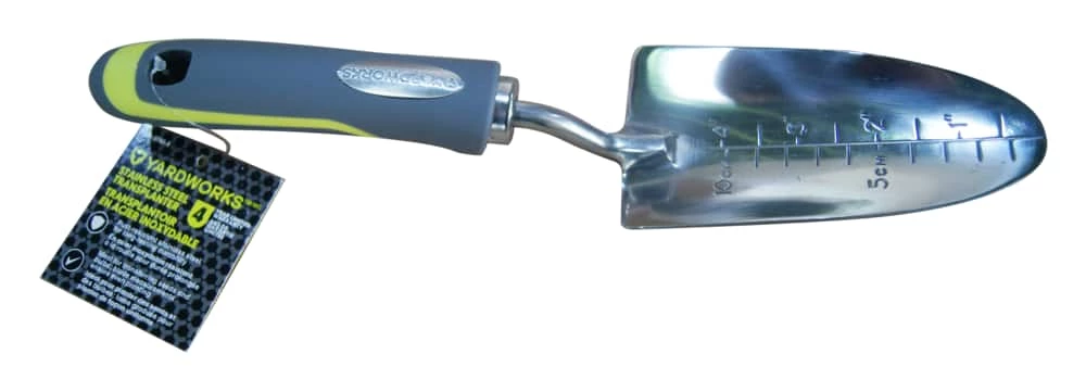 - Yardworks Stainless Steel Hand Transplanter features an ergonomic design for comfortable gardening