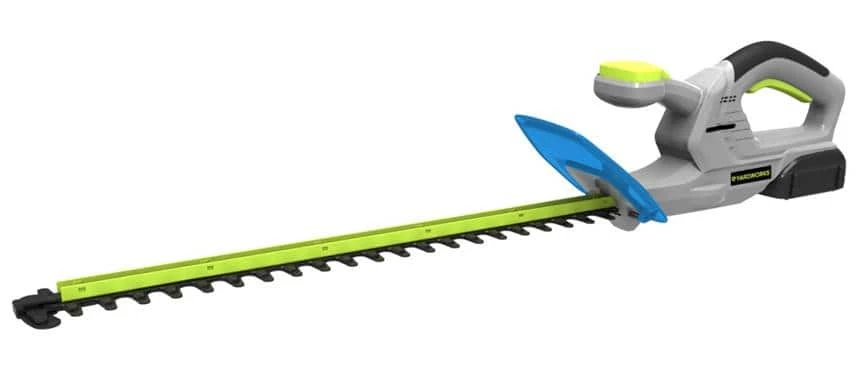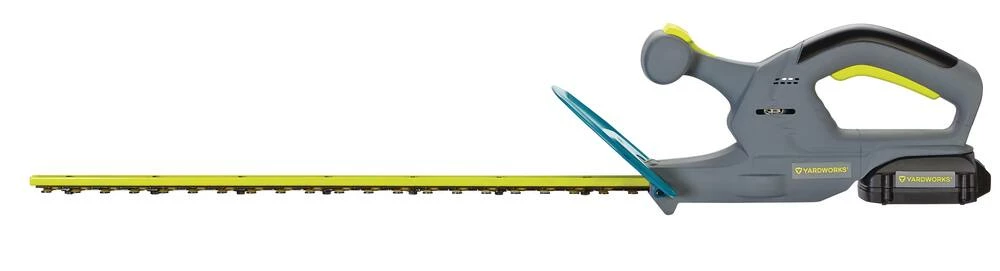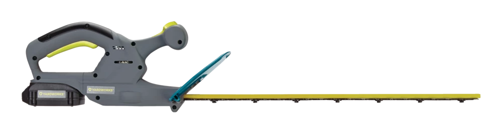 - Yardworks 20V Hedge Trimmer features a dual action blade that provides more cutting for less time