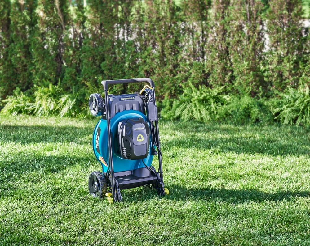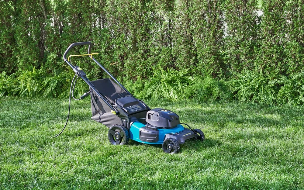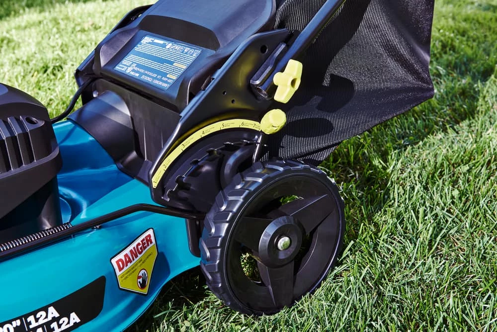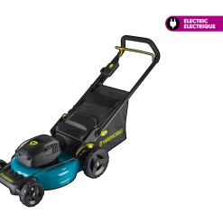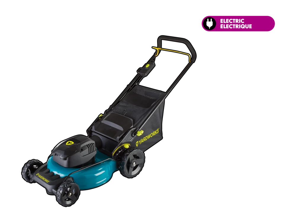 - Yardworks 12A 3-in-1 Electric Lawn Mower is powered by a 12A motor