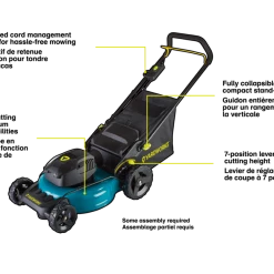 - 3-in-1 functionality to include rear-bag collection, mulching and side-discharging
