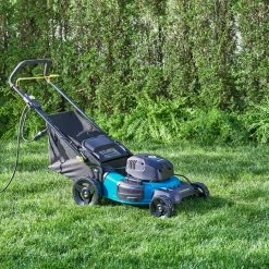 - Features a durable 20″ (50.8 cm) steel cutting deck and a 19″ (48.3 cm) cutting path