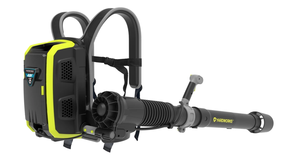 - Yardworks 48V Backpack Blower features a brushless motor for increased power and run-time