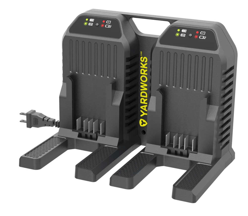 - Yardworks 48V Dual Battery Charger features a diagnostic LED fuel indicator for charging reference