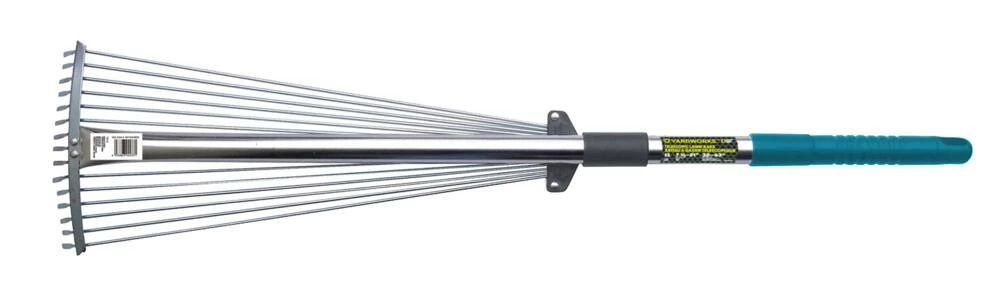 - Yardworks Telescopic Leaf Rake handle adjusts to your needs