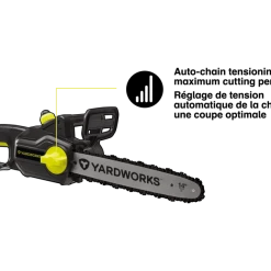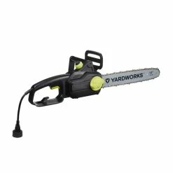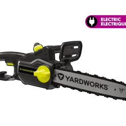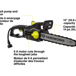 - Yardworks 9A Corded Electric Chainsaw features a 14″ (35.5 cm) bar and chain
