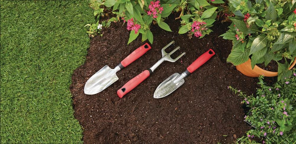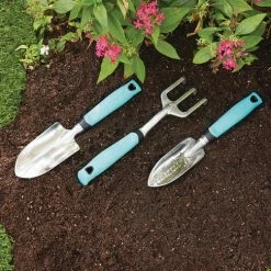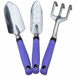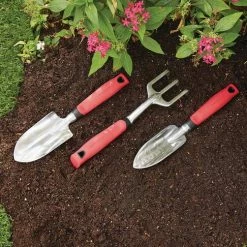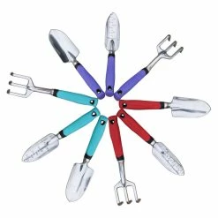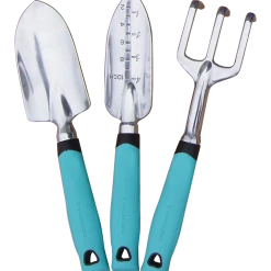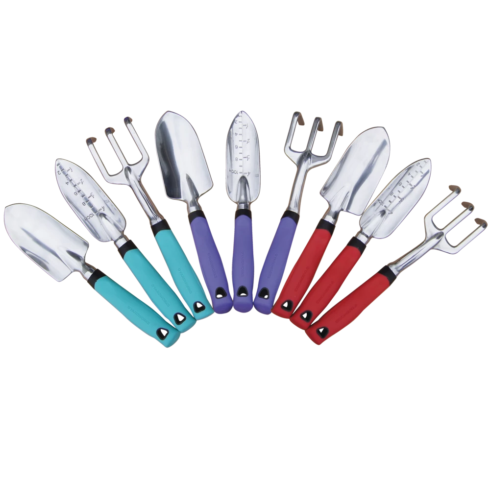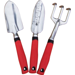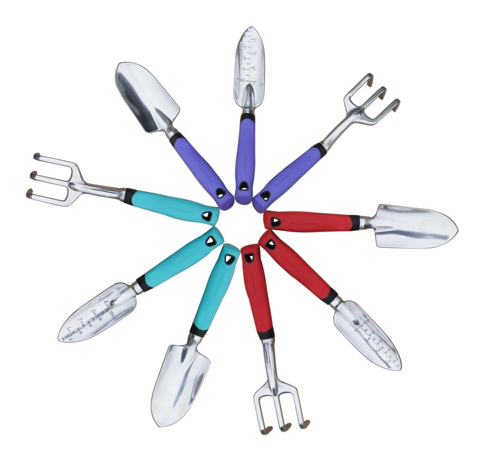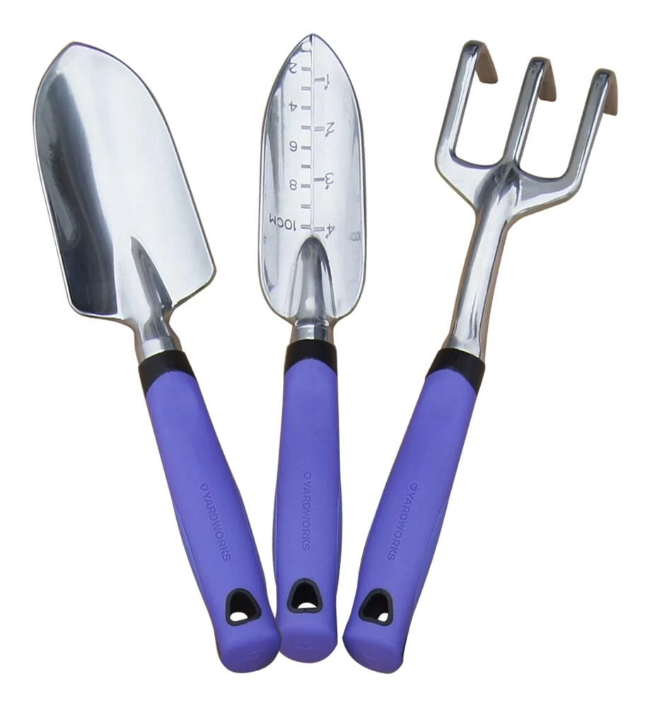 - Yardworks Colour Aluminum Garden Tool Set features a trowel, transplanter and a cultivator in a blister pack
