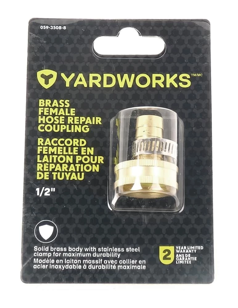 - Yardworks Female End Hose Repair is made of a crush-proof construction with solid brass couplings and stainless steel clamps for maximum durability