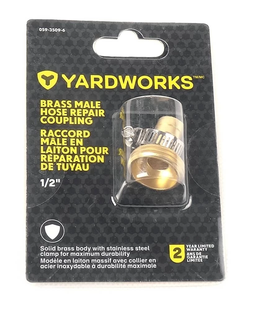 - Yardworks Male End Hose Repair is made of a crush-proof construction with solid brass couplings and stainless steel clamps for maximum durability