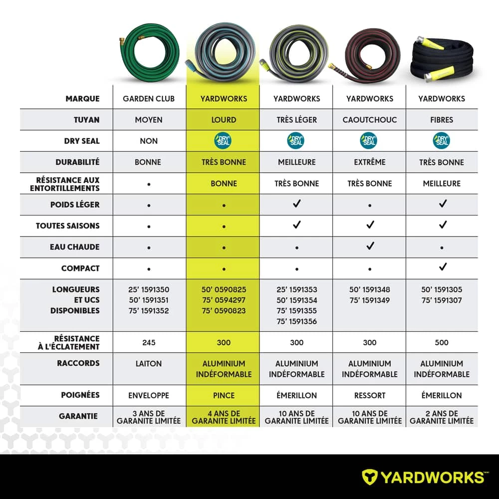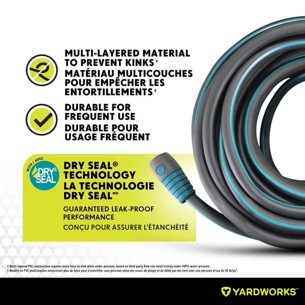 - Yardworks Heavy-Duty Dry Seal Garden Hose features double braided radial reinforcement for increased durability