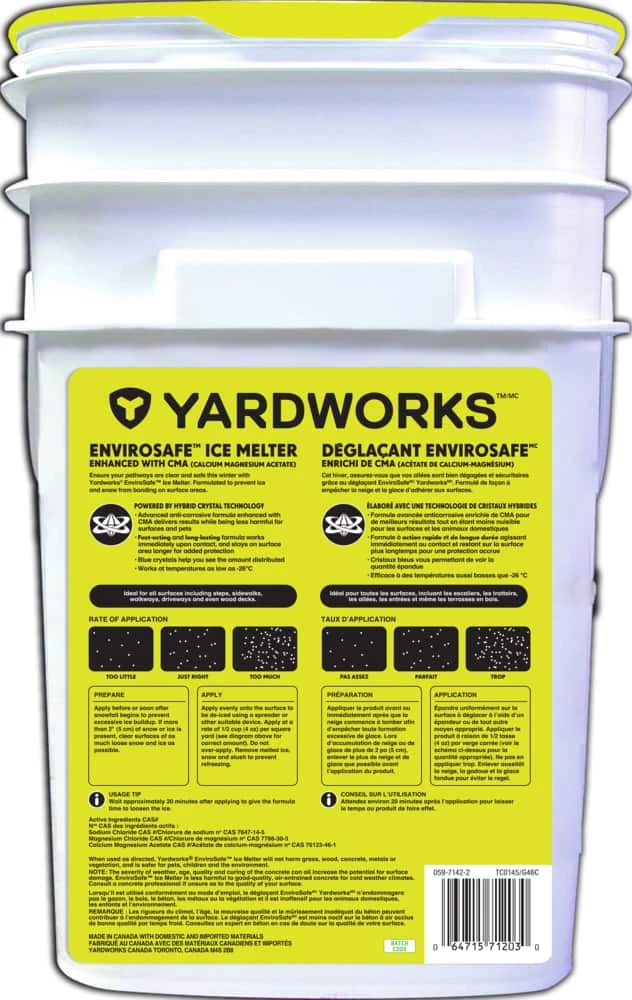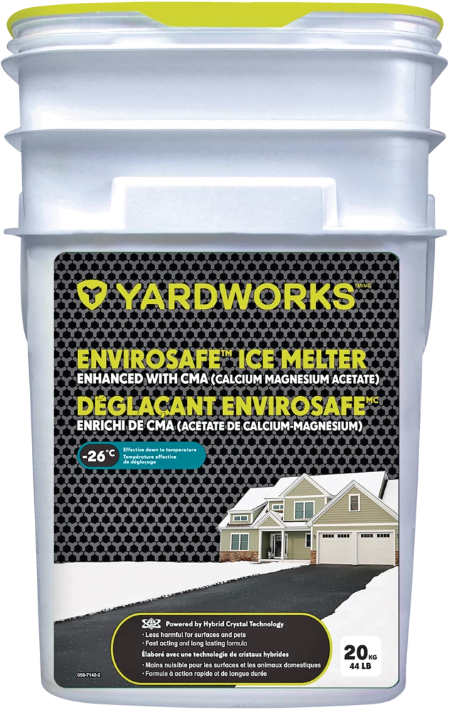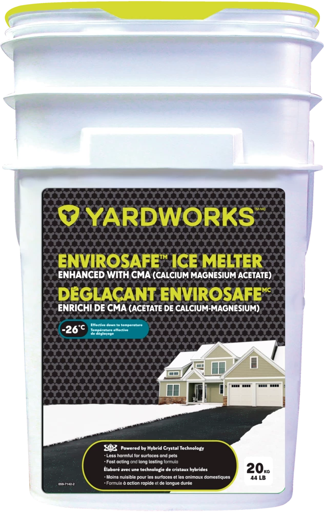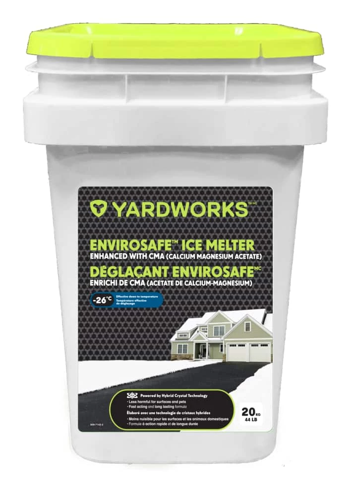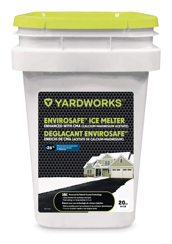 - Yardworks Envirosafe⢠Ice Melter Pail is a fast acting formula that initiates de-icing faster and lasts longer