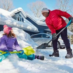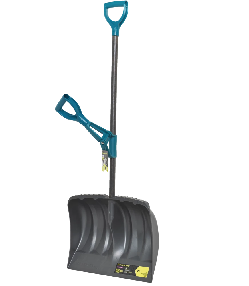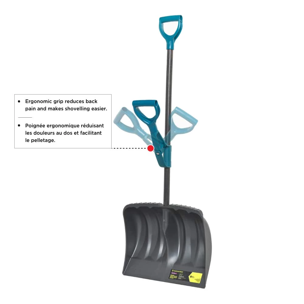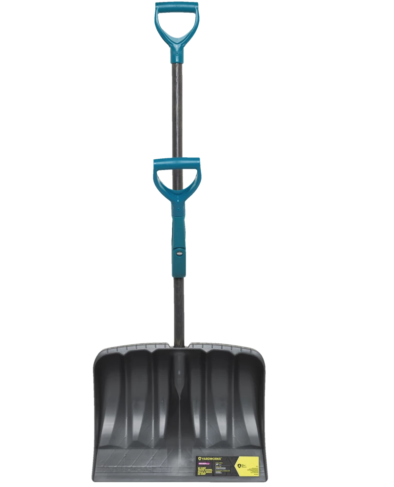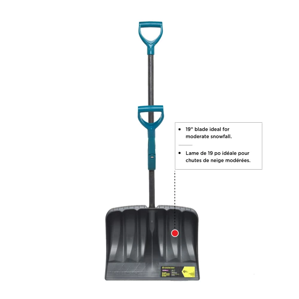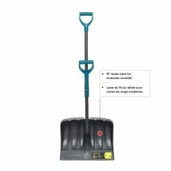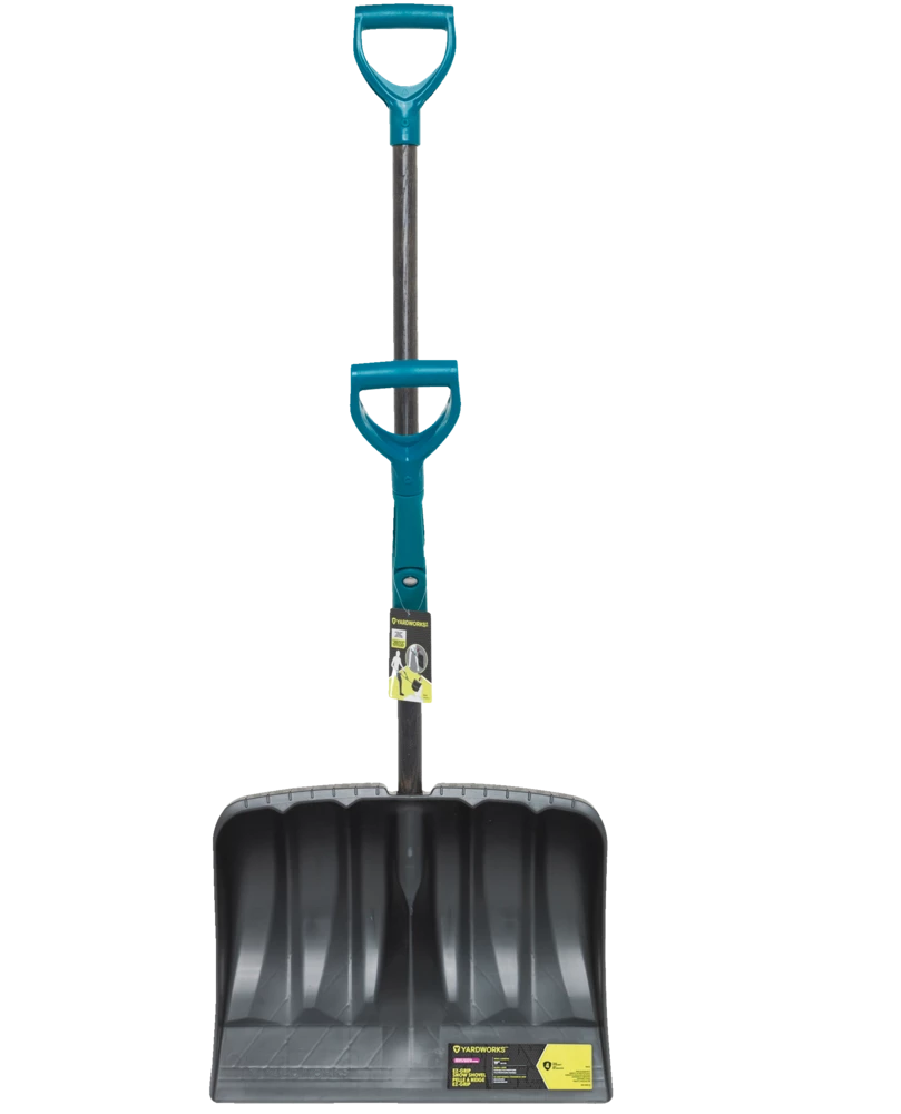 The Yardworks EZ Grip Snow Scoop and Pusher Shovel, 19″ is the perfect solution for improved ergonomics while shoveling in any snowfall conditions. The two D-grip handles allow you to shovel snow in an upright position, relieving back strain and making the process more comfortable. The lower handle of this snow scoop moves in a swivel motion, providing easier movement. This snow shovel is ideal for scooping snow, and the rounded polypropylene blade is 30% more durable than standard polyethylene. A wood shaft provides longevity and durability while the combo blade tumbles large quantities of snow. No matter the task, this reliable shovel will provide an efficient, comfortable solution for your snow removal needs.