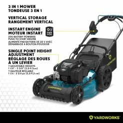 - Yardworks EZ Steer 163cc Briggs & Stratton Gas Mower features 7 one-touch adjustment positions
