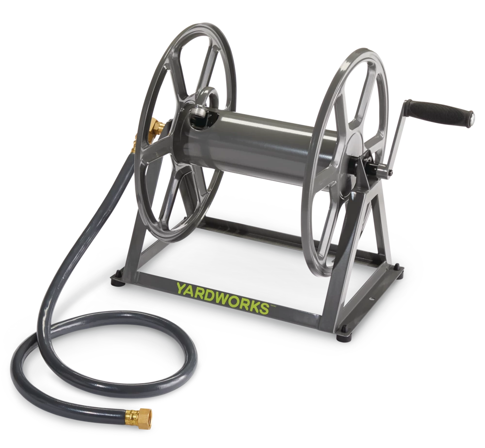 - Yardworks Metal Hose Reel can be used by just placing it on the ground or it can be mounted to the side of your home making it a convenient way to store your hose