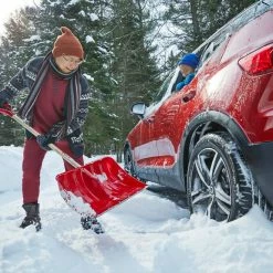Be prepared for winter weather thanks to the Yardworks Snow Scoop Shovel with Nylon Wear Strip, 19″ – CT 100th Anniversary Edition. To celebrate Canadian Tire’s 100th anniversary, this special edition red snow shovel features an embossed CT 100 logo. This resilient shovel is specially designed to provide fast, easy snow removal in heavy snowfall conditions. This snow shovel has a rounded This snow shovel has a rounded polyethylene blade which is ideal for scooping and lifting snow. The durable nylon wear strip is flexible and scratch-free, providing a clean edge without damaging surfaces. Foot steps provide additional leverage while shoveling snow. The hardwood shaft is finished with a D-grip, which makes it easy to hold the snow scoop while wearing gloves. No matter what winter throws your way, this strong, reliable shovel will help get the job done.