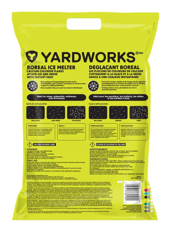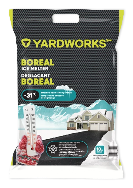 - Yardworks High Performance Ice Melter Bag is formulated with calcium chloride to attack ice and snow with instant heat
