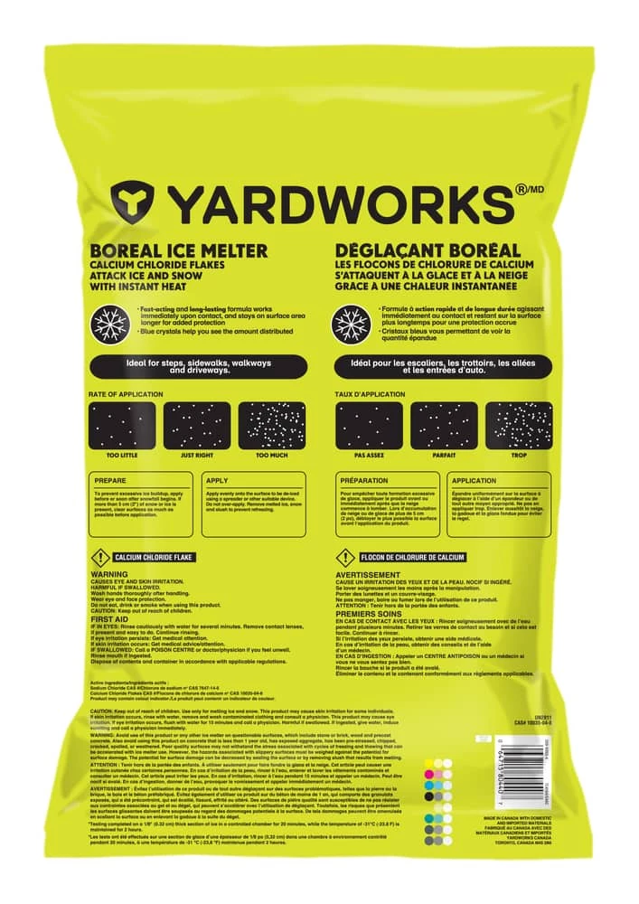 - Yardworks High Performance Ice Melter Bag is formulated with calcium chloride to attack ice and snow with instant heat