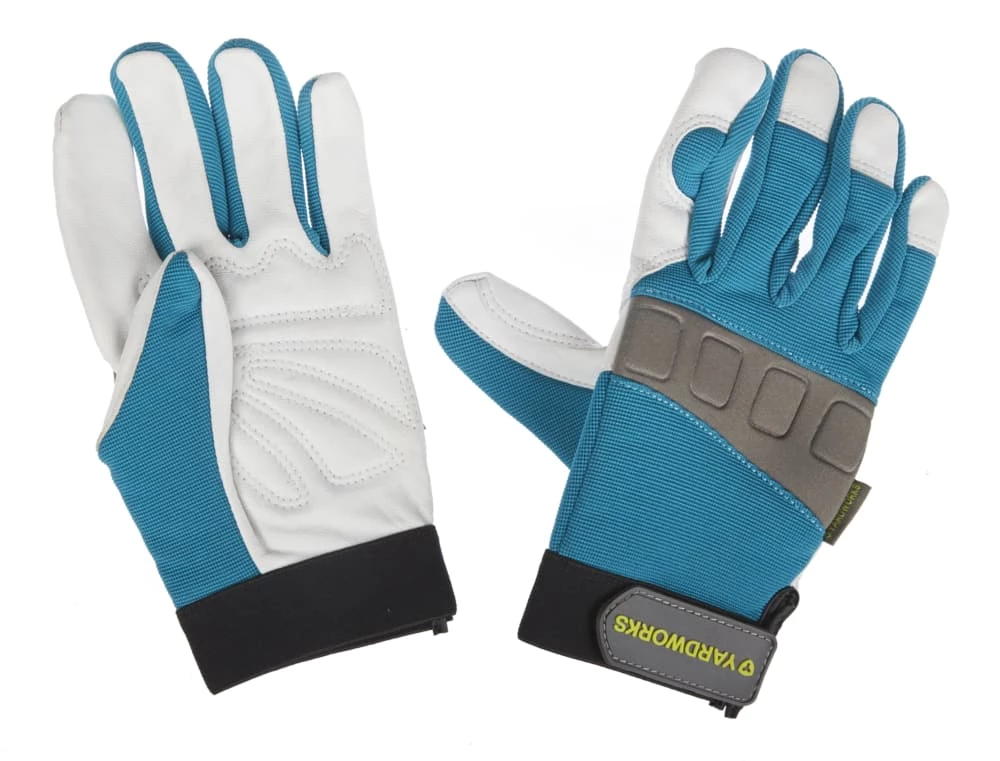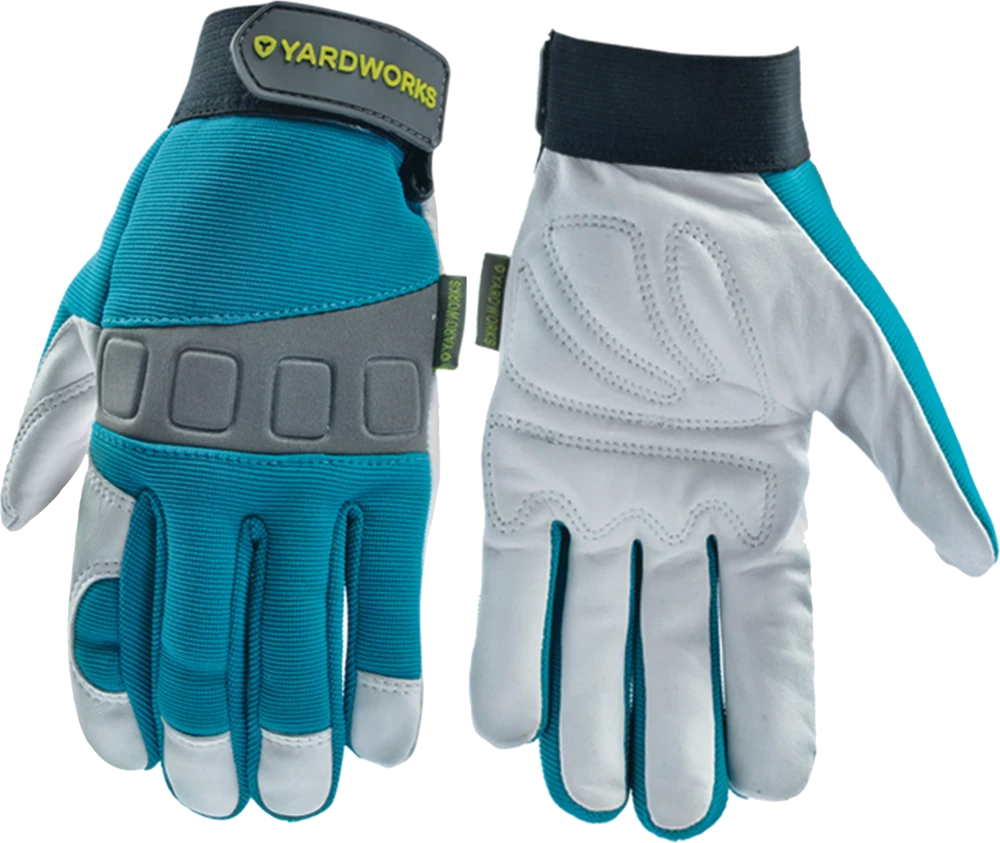 - Yardworks Impact Protection Gloves are constructed out of premium Goat Leather, Spandex and Neoprene