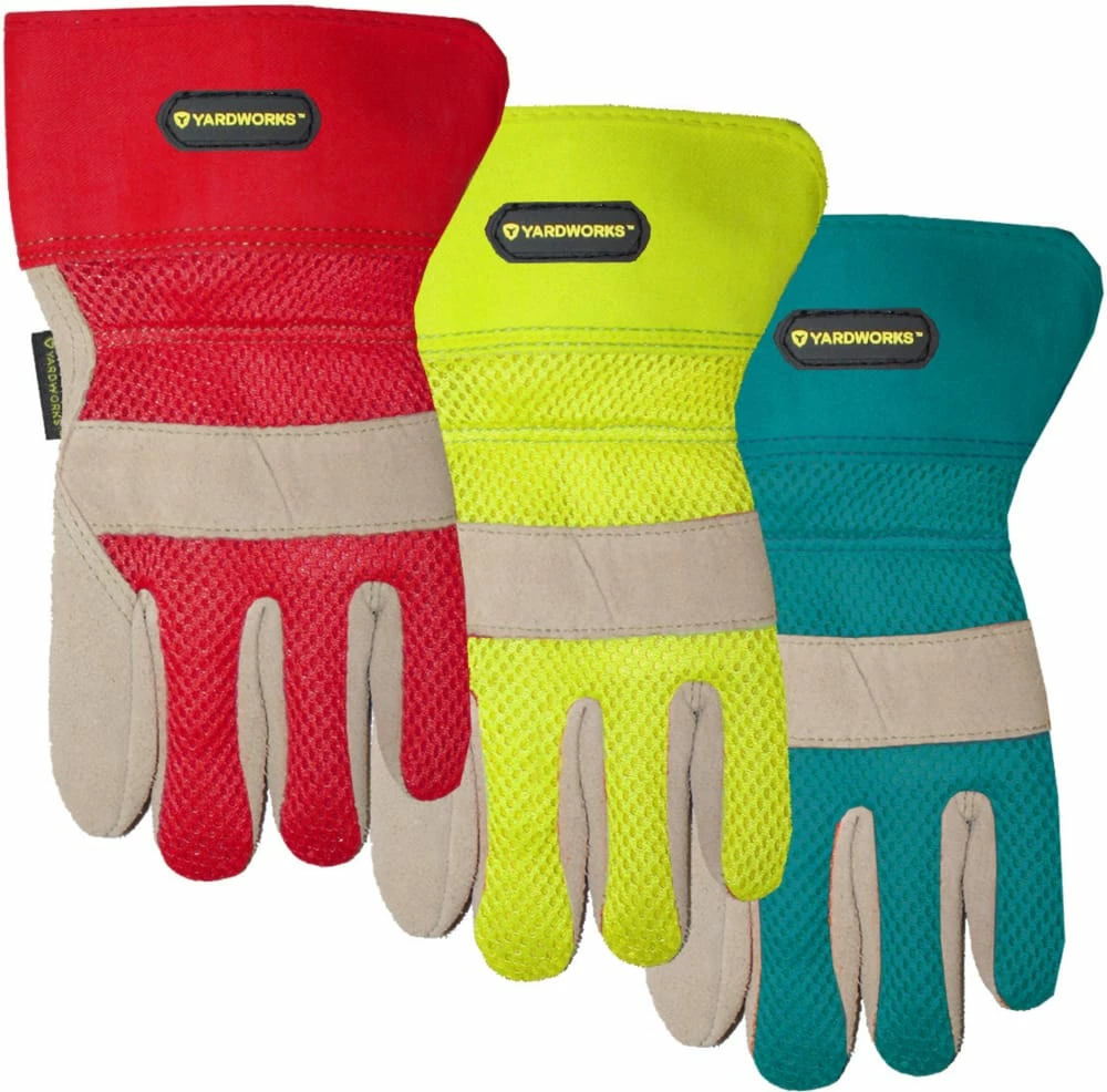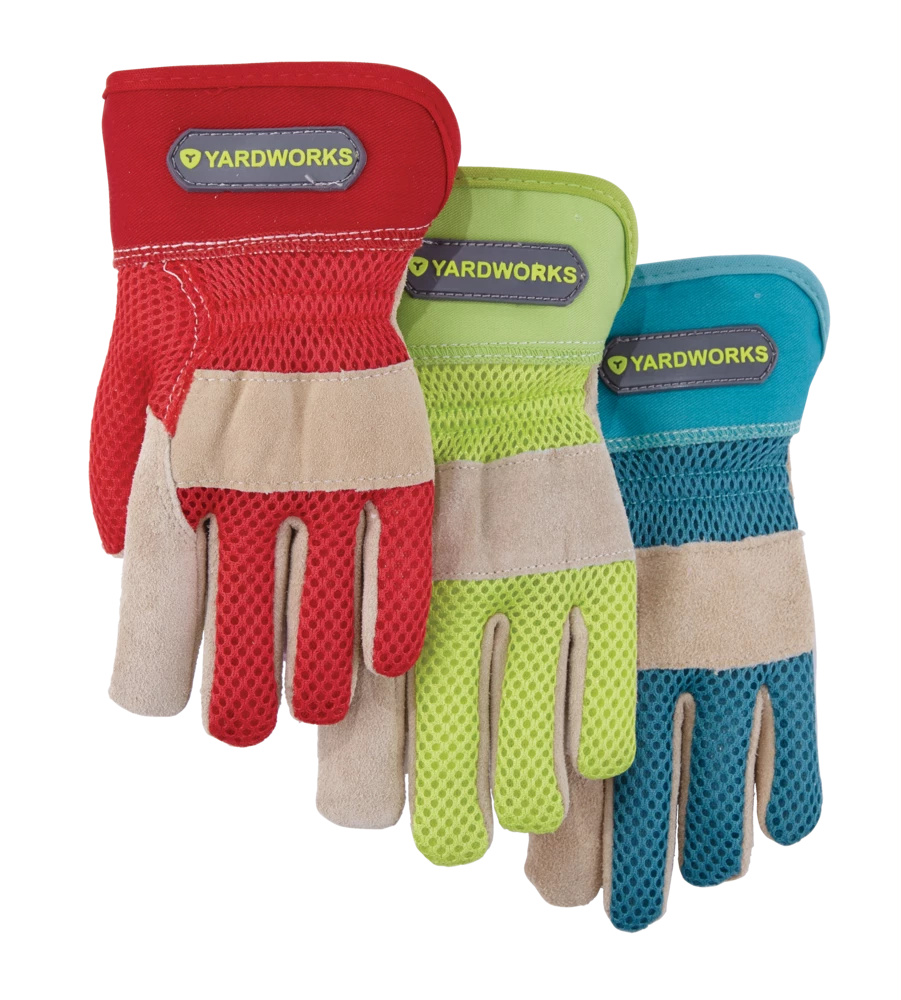 - Yardworks Kids’ Leather Garden Gloves come in vibrant colours