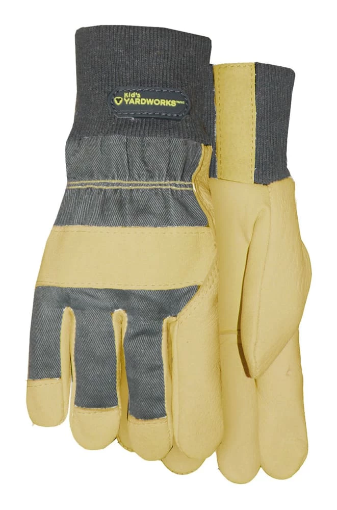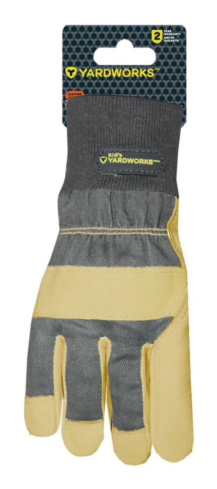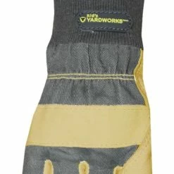 - Yardworks Kid’s Garden Gloves features durable leather construction on the palm, fingertips and knuckle strap