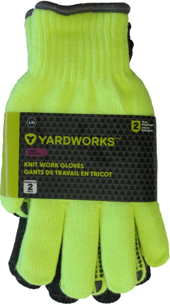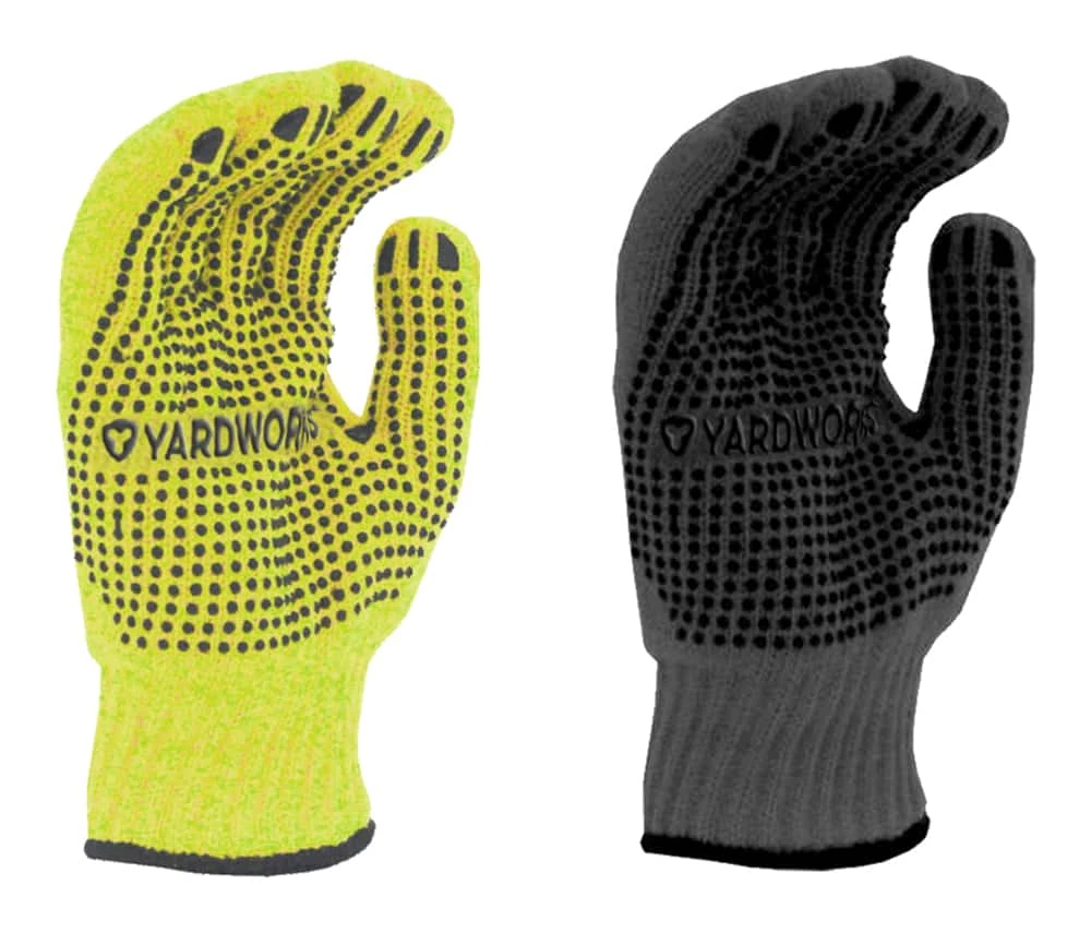 - Yardworks Knit Dotted Palm Lined Glove features a PVC dot design that helps with grip