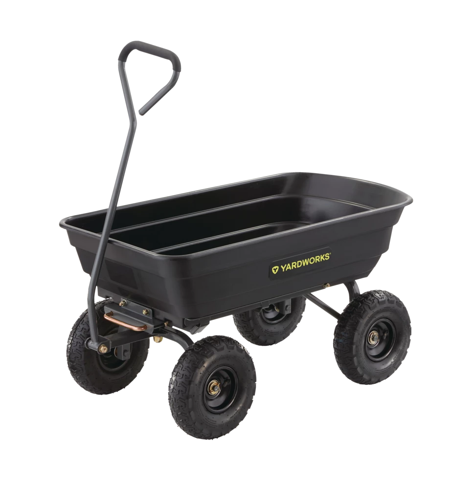 - Yardworks Poly Garden Cart features an easy-to-clean poly bed