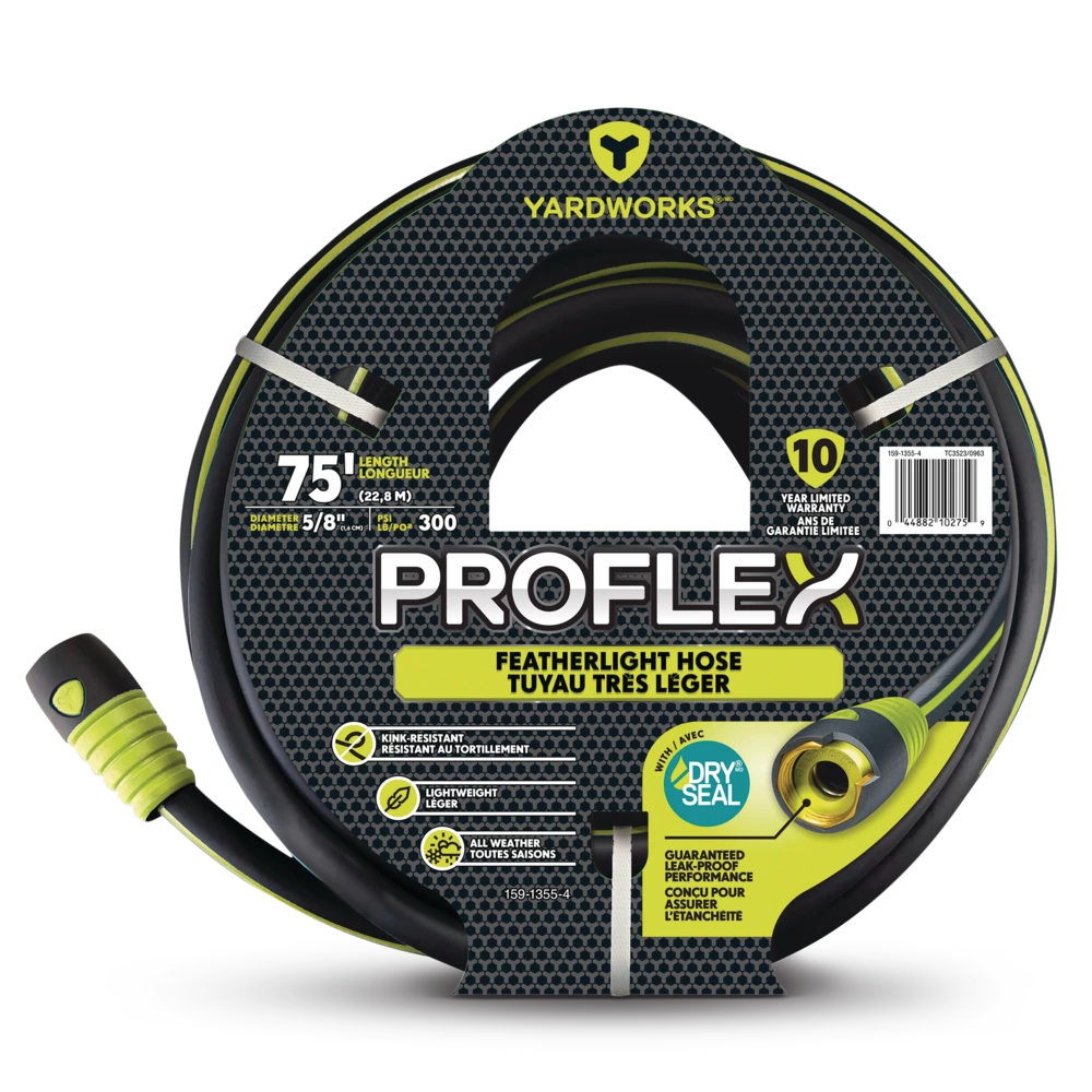 - Yardworks ProFlex Dry Seal Featherlight Hose features a dry seal for a guaranteed leak-proof performance