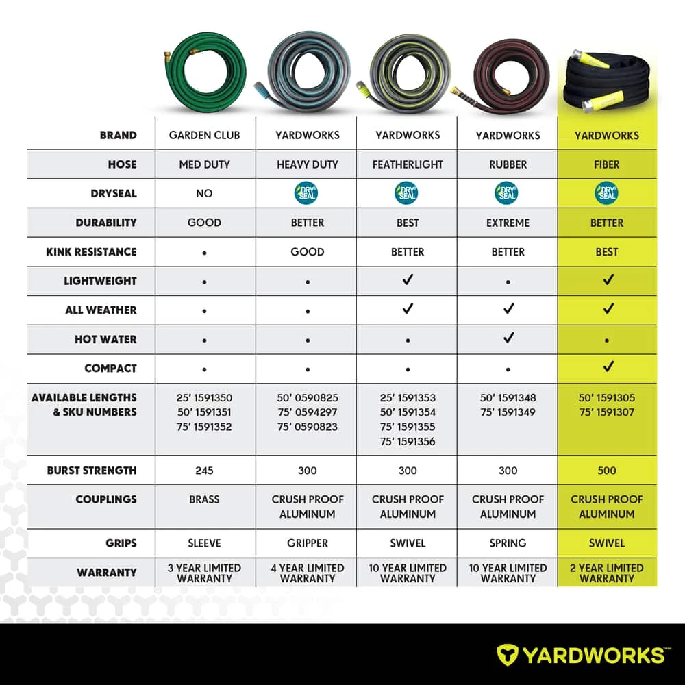 - Yardworks ProFlex Fiber Jacket Fabric Hose features a dry seal for a guaranteed leak-proof performance