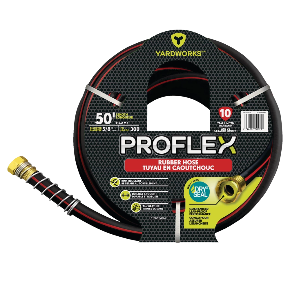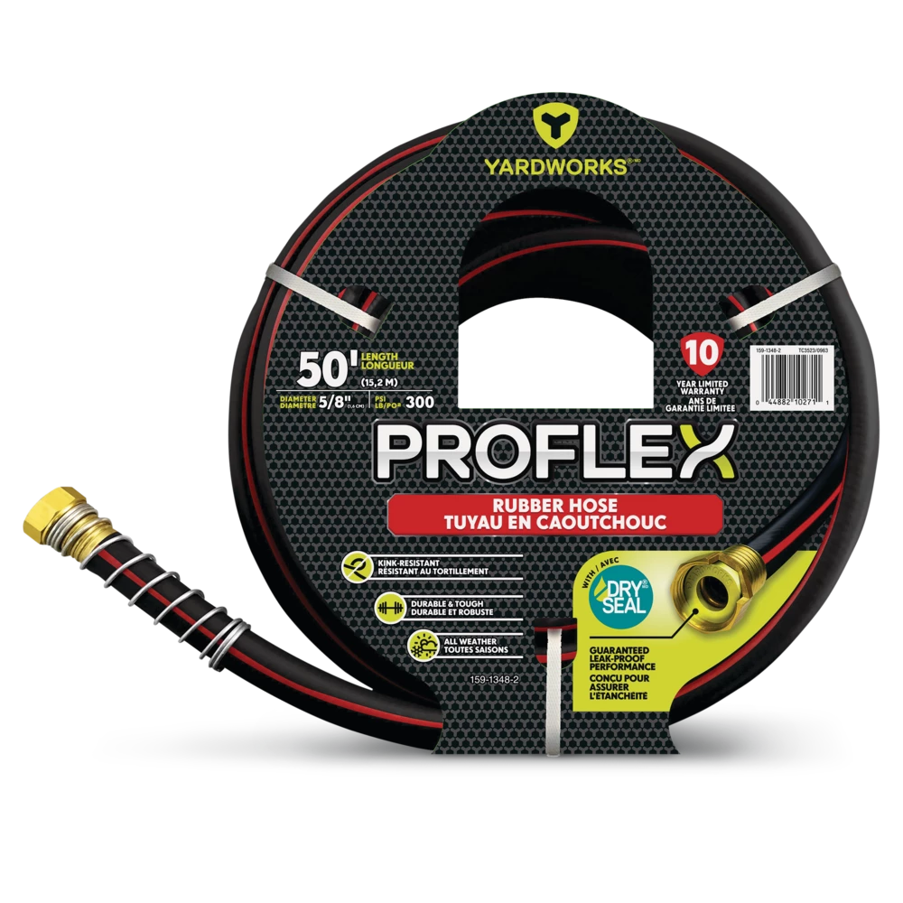 - Yardworks ProFlex Rubber Hose features a dry seal for a guaranteed leak-proof performance