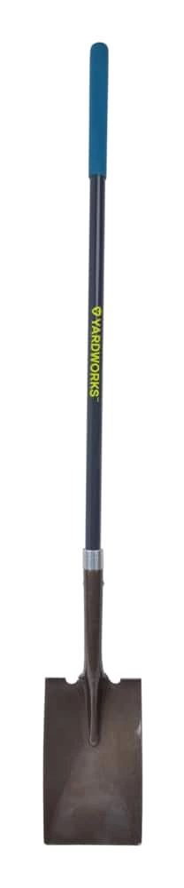 - Yardworks Fibreglass Long Handle Spade Shovel features an ergonomic, tear-drop shaped handle with grips for both hands