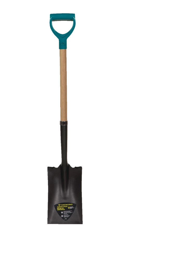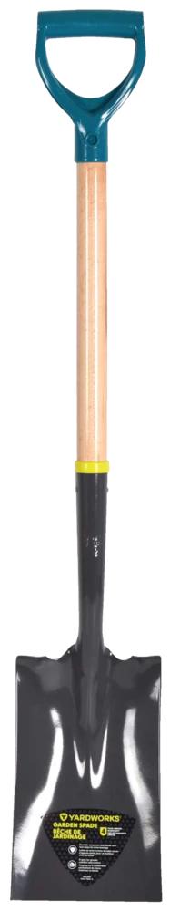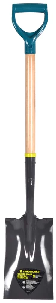 - Yardworks D-Handle Spade features a durable tempered steel head
