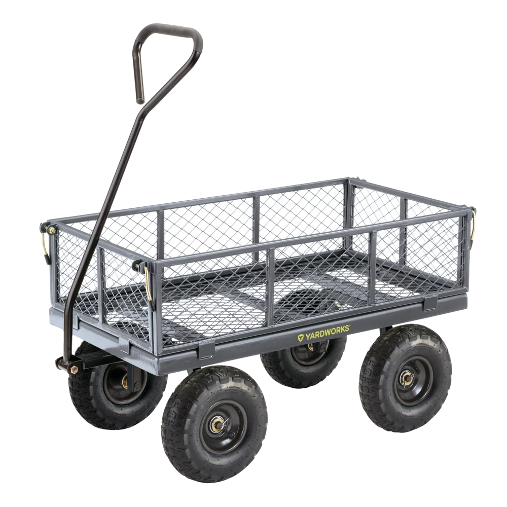 - Yardworks Steel Garden Cart features a heavy-duty steel bed