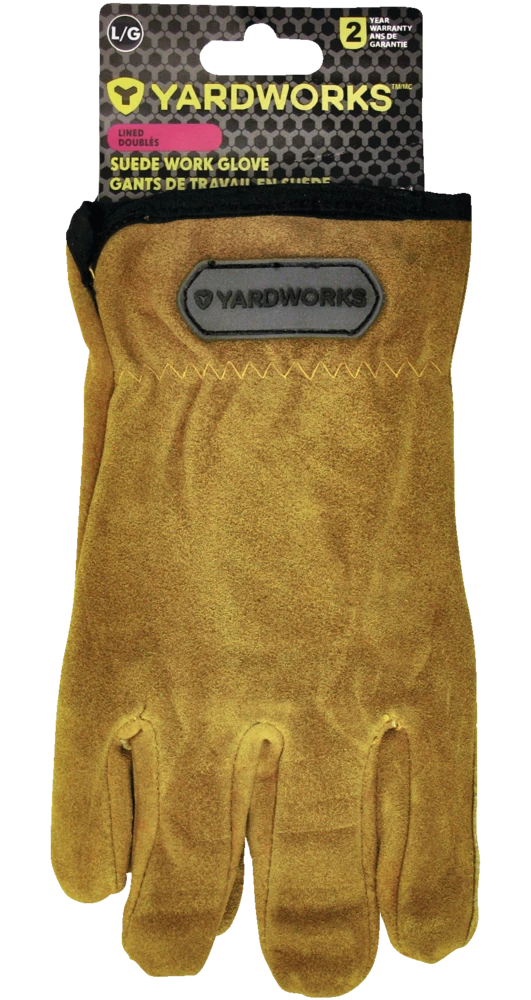 - Yardworks Suede Fleeced Lined Gloves provide excellent strength, durability, and comfort for all your outdoor needs