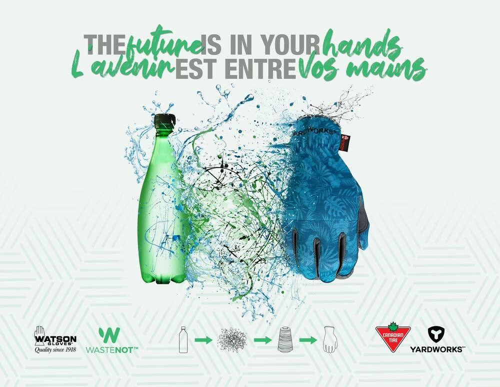 - Yardworks WasteNot™ Microfibre Gardening Gloves offers a WasteNot™ recycled back made from post-consumer recycled plastic bottles (PET)