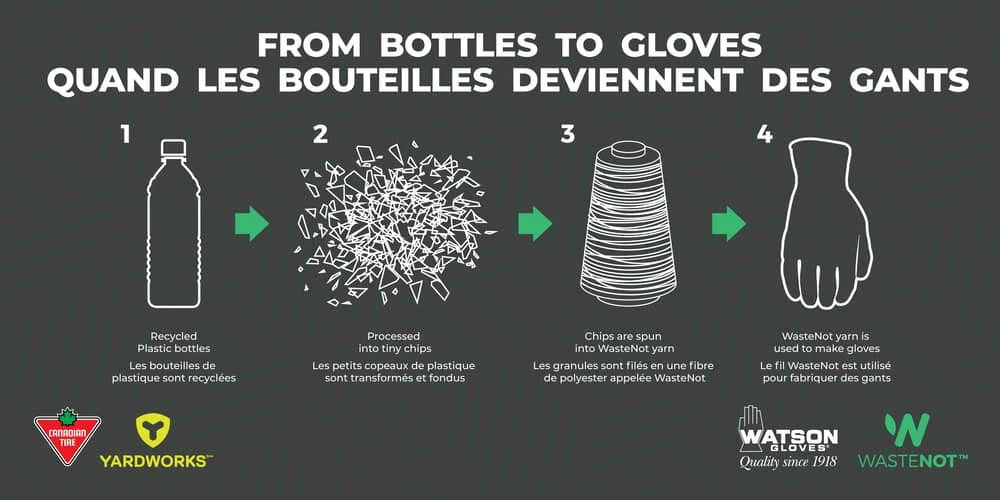 - Yardworks Ladies WasteNot™ Microfibre Gardening Gloves offers a WasteNot™ recycled back made from post-consumer recycled plastic bottles (PET)