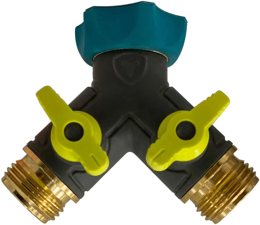 - Yardworks Zinc Y Hose Connector allows two hoses to be run off one faucet